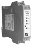 Applied Measurements RM-074 DIN rail mount AC LVDT signal conditioning unit with excitation, demodulation and voltage/current amplification options.