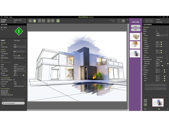 SmartWorks Imaging brief: Optimized throughout, SmartWorks Imaging is clear and easy to navigate. A faster performance with revised preset control, better printer drivers and a new multi-page thumbnail pop-out feature making SmartWorks Imaging the perfect high productivity partner for SmartLF SCi and SmartLF SGi large format scanners. SmartWorks Imaging software Specifications: High productivity:New super-fast graphics engine and automatic image enhancement functions deliver high productivity and excellent quality scans every time.