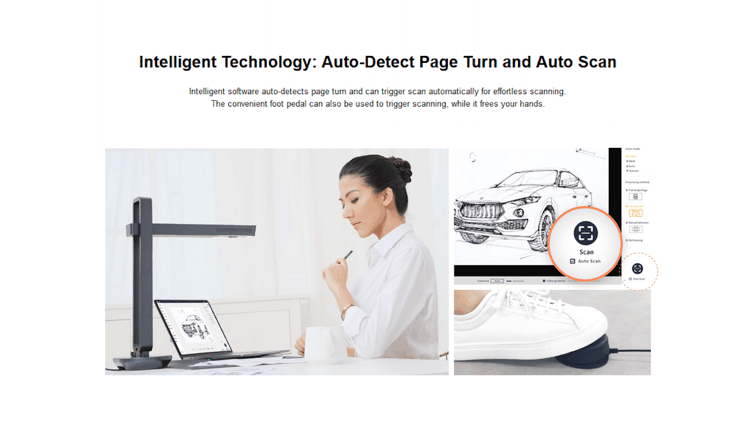 CZUR's curve flattening technology automatically removes the natural curve of an open book or magazine and within moments produces separate flat images of the left a right hand-side pages.