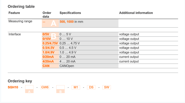Profile SGH10: - Measuring range 0 … 1000 mm (39.37 inches)
