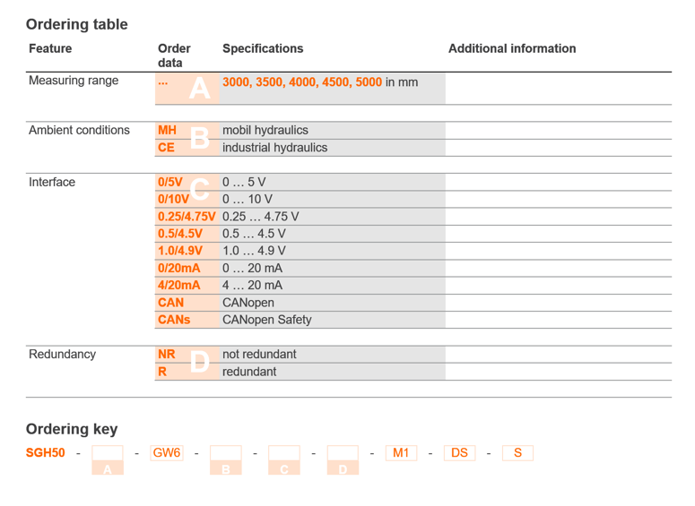 You are not logged in. Please Login or register to view prices and order online. Description: The SGH series technology neatly transforms standard and telescopic hydraulic cylinders, as well as piston accumulators, into smart and controllable hydraulic systems. An SGH series sensor is suitable for all applications. With measuring lengths of up to 5,000 mm, a wide selection of interfaces and mechanical flexibility, our SGH family can both mechanically and electrically integrate into the widest range of applications.