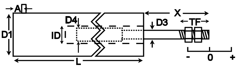 | D1 = 20.6mm | | ID = 2.54mm | | D3 = 2.0mm | | D4 = 2.0mm | | TF = M3x0.5 | | | |