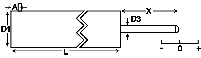 | Type | Range | Linearity error (% F.S.) | L | X | Total weight | Spring force (nom) | Over-Travel |